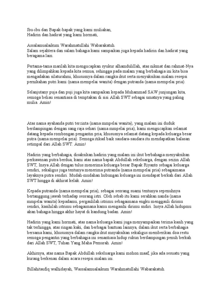 Jun 02, 2020 · kata sambutan pernikahan ini biasanya merupakan perwakilan dari kedua pihak keluarga, baik dalam acara lamaran maupun pernikahan.