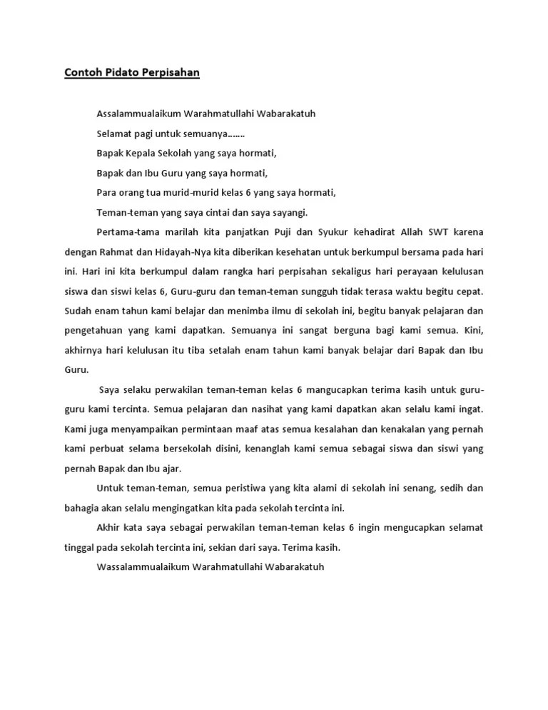 Pidato perpisahan kelas ix ya langsung saja simak,, dan hafalkan :)nama. Puji dan syukur mari kita haturkan ke hadirat tuhan yang maha esa, karena atas berkat dan . Wb yang terhormat bapak kepala sekolah. Sekalipun tempat yang di tempati oleh teman kita cristian gonzales yang baru ini jauh dari tempat kita, namun buat kita dekat dalam hati. Contoh pidato perpisahan singkat untuk kelulusan sekolah,.